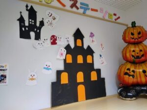 いつもと違う雰囲気の部屋に「すごい!」「おばけがいる~!」「クモの巣!」とじっくり見て、わくわくなわんぱくっ子たちでした!
