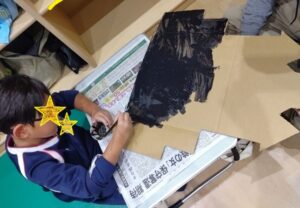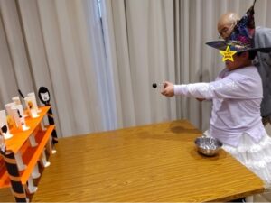 いつもと違う雰囲気の部屋に「すごい!」「おばけがいる~!」「クモの巣!」とじっくり見て、わくわくなわんぱくっ子たちでした!
