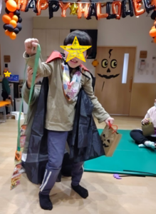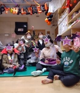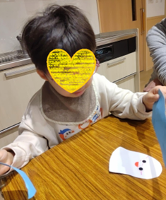 かわいく仮装をしたらハロウィンパーティーの始まりです♪おやつ引きでは、なにが出るかドキドキ…ゆっくり引いておやつが見えると、満面の笑顔になるわんぱくっ子たちで大盛り上がりのパーティーになりました!